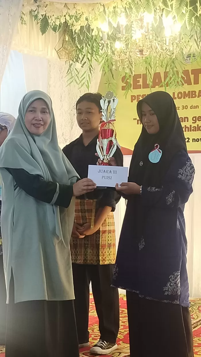Tilatang Kamang, Humas --Prestasi membanggakan kembali ditorehkan oleh peserta didik MTsN 1 Agam. Nur Khayla Islami berhasil meraih Juara III pada Lomba Baca Puisi Tingkat SMP/MTs Se-Sumatera Barat dalam ajang FoCas II SMAI Al Ishlah Bukittinggi, yang berlangsung pada Sabtu (22/11).